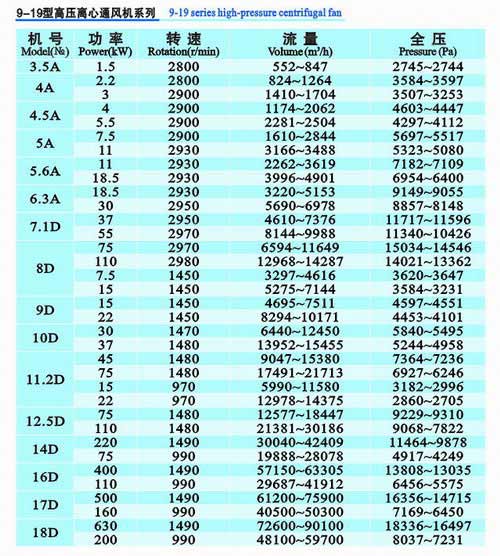 9-19系列風(fēng)機(jī)一般用于鍛冶爐、玻璃、電鍍、陶瓷、畜電池、無(wú)線電等行業(yè)高壓強(qiáng)制通風(fēng),并可廣泛用于糧食、飼料、礦粉等加工行業(yè)的物料輸送,也適合用于紙箱機(jī)械設(shè)備、鋼化玻璃設(shè)備等配套使用。輸送的介質(zhì)為空氣和其它不自燃、對(duì)人體無(wú)害、無(wú)腐蝕性氣體,氣體內(nèi)不允許有粘性物質(zhì),一般通風(fēng)換氣時(shí)使用溫度不得超過(guò)80℃,所含的塵土幾硬質(zhì)顆粒物不大于≤150mg/m3。