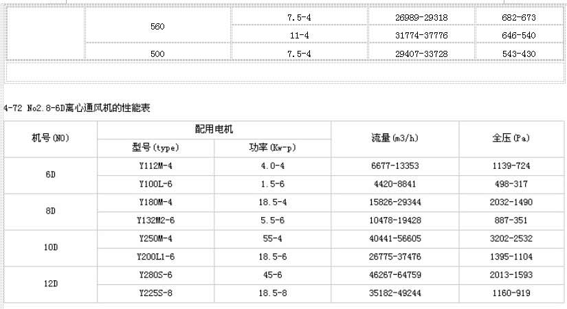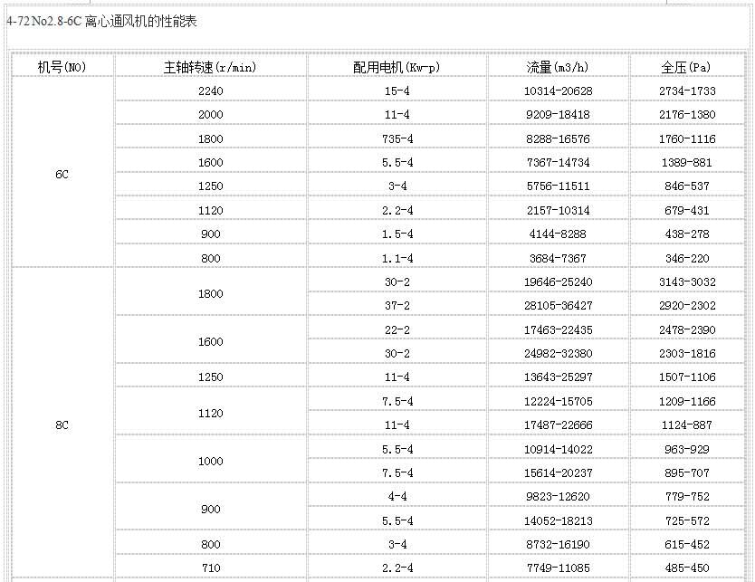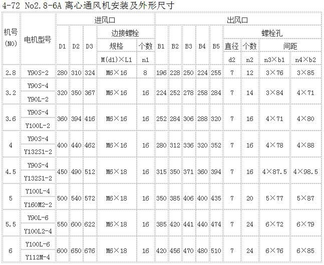 4-72型離心通風即傳動方式:A為電機直聯傳動,C為電機通過軸承箱皮帶傳動,D為電機通過軸承箱聯軸器傳動,NO2.8-6采用A式傳動,NO8-12采用C、D式傳動。